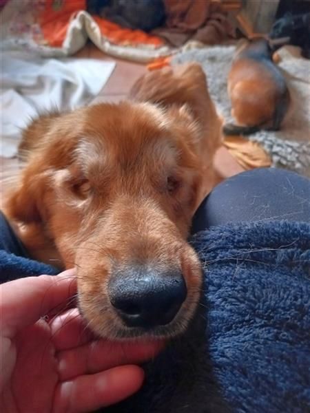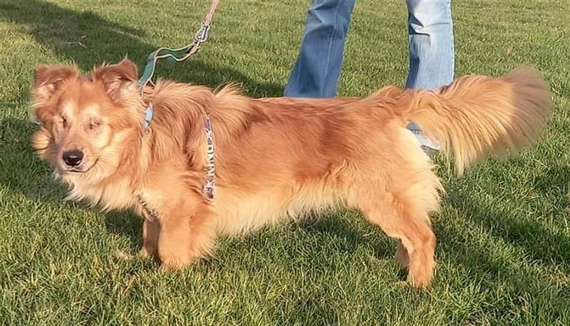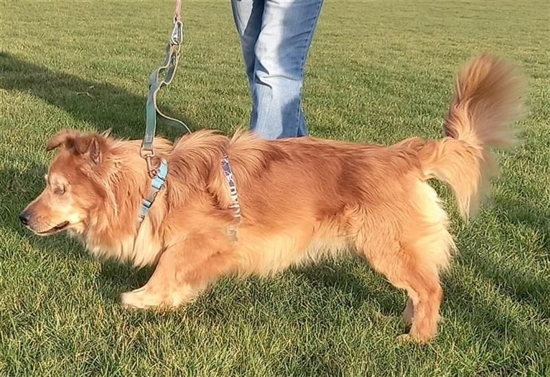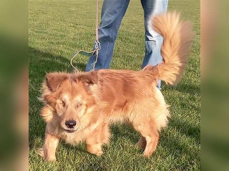 Er sieht aus wie ein kleiner Goldi-Mix und man muss sich wundern wie gut seine anderen Sinnesorgane funktionieren obwohl er leider von jetzt auf gleich das Augenlicht verloren hat. Gott sei Dank kommt er gut mit dem Handicap zurecht und ist schnell zutraulich bei seinen Bezugspersonen.
