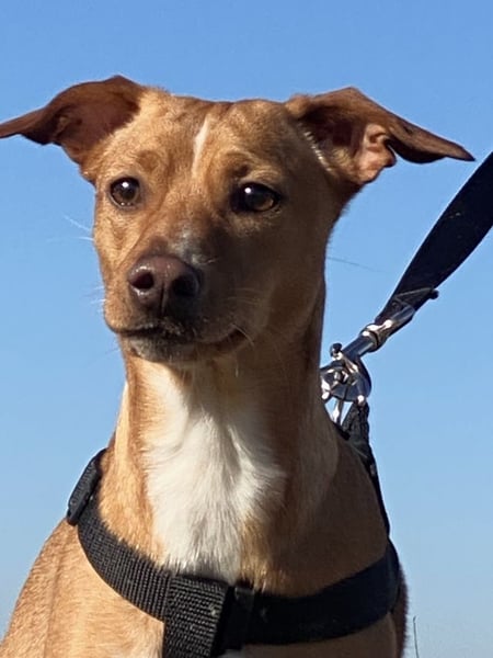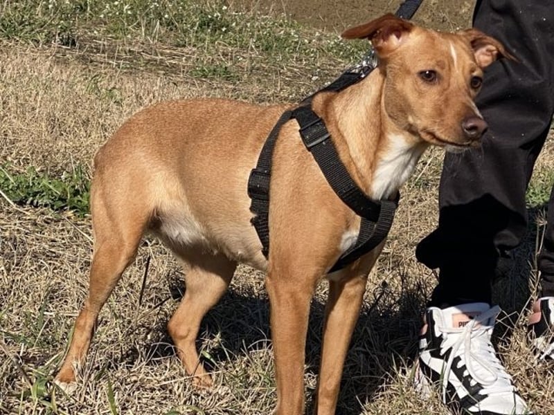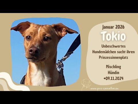 Tokio ist mir ihren rund 14 Monaten (Stand Januar 2026) die jüngste der drei. Sie hat hellbraunes Fell, eine weiße Brust, eine ebenso weiße Linie zwischen den Augen und einen Blick, der die Welt voller Neugierde aufzusaugen scheint. Unsere Mitarbeiterin vor Ort berichtet, dass Tokio die unbekümmertste des Trios sei, immer fröhlich, voller Unternehmergeist. Sie sei einfach nur eine liebe kleine Hündin, die sich über jeden Besuch und jede noch so kleine Aufmerksamkeit freue. Tokio gehe sehr gerne spazieren, an der Leine schon ziemlich gut, und würde sehr gut zu einer aktiven Familie passen, gerne auch mit (nicht allzu kleinen) Kindern.