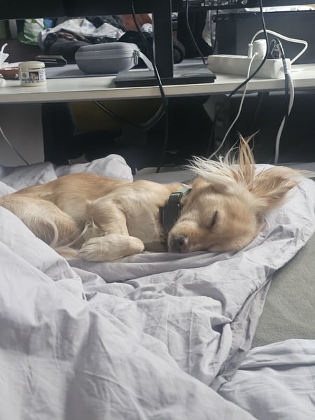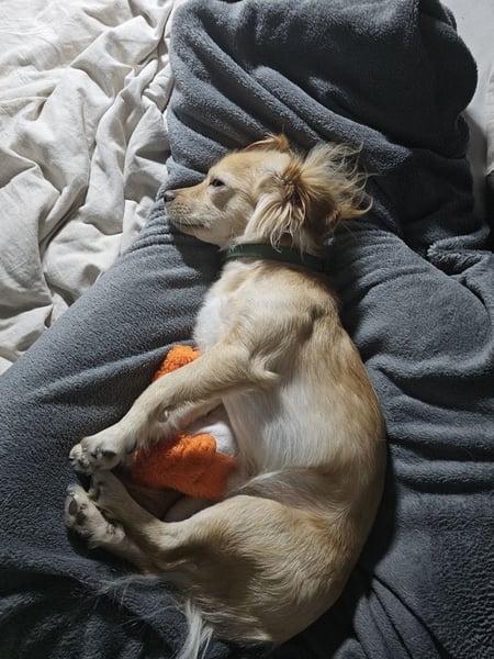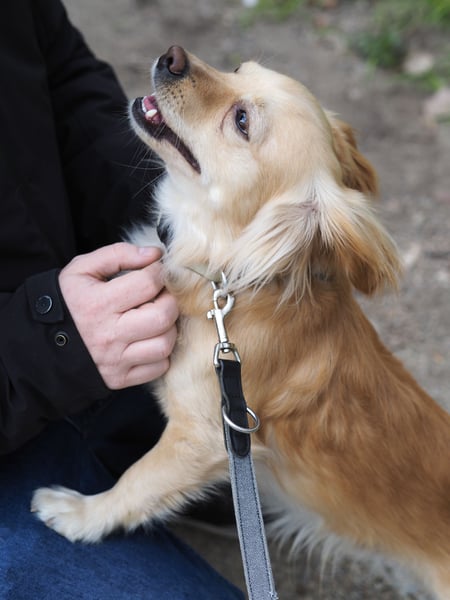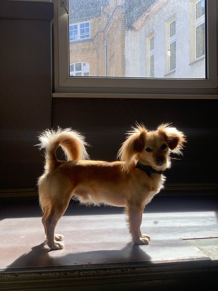Der junge Rüde ist ein echter Gute-Laune-Garant: super witzig, klug und voller Energie, mit einem kleinen Schalk im Nacken. Ob er stolz eine „erbeutete“ Socke in sein Körbchen trägt oder spontan seine wilden fünf Minuten bekommt – Mio sorgt regelmäßig für ein Schmunzeln. Er ist sehr menschenbezogen, sucht aktiv die Nähe seiner Bezugsperson und orientiert sich eng an ihr. Klare Regeln versteht und akzeptiert er schnell. Zudem ist er ausgesprochen lernwillig und durch seine hohe Futtermotivation ein dankbarer Trainingspartner, der sich große Mühe gibt, alles richtig zu machen und seinen Menschen zu gefallen.