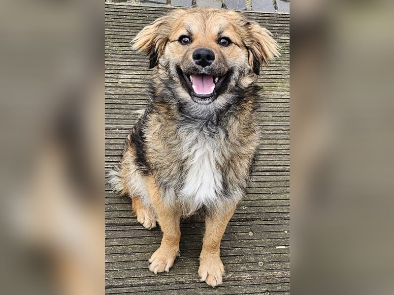 Maggie ist geschätzt 1-2 Jahre alt und ca. 35-40cm groß bei etwa 8kg Gewicht. Mit anderen Hunden ist Maggie gut verträglich.