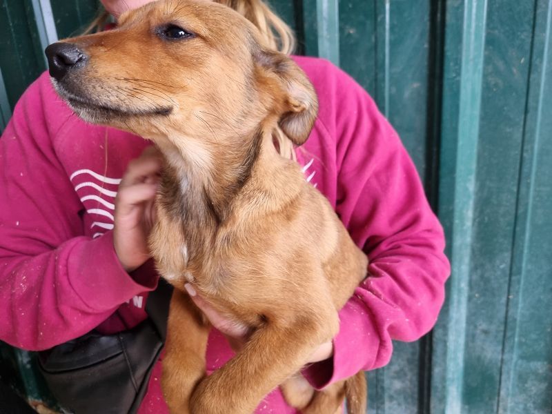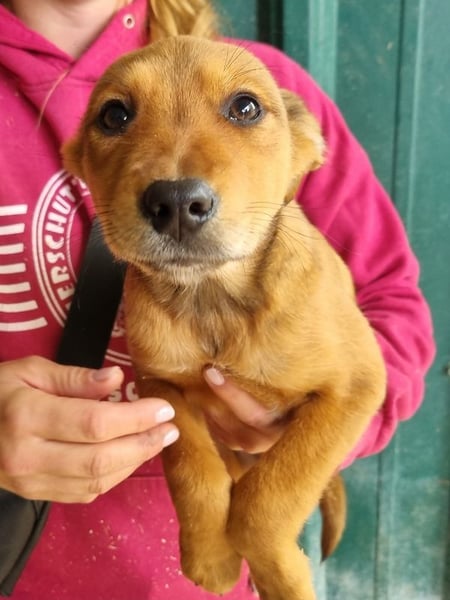Verona ist eine junge kleine, fuchsfarbene Welpenhündin, die noch ganz am Anfang ihres Lebens steht. Ihr Blick ist wach und neugierig, auch wenn sie die Welt um sich herum bisher noch kaum kennenlernen durfte. Menschen gegenüber zeigt sie sich aktuell noch zurückhaltend. Der Kontakt zu Menschen war bislang leider sehr begrenzt, weshalb ihr vieles noch fremd und ungewohnt erscheint. Als sie auf den Arm genommen wurde, hat sie zunächst zitternd reagiert – nicht aus Ablehnung, sondern aus Unsicherheit, weil sie nicht wusste was passiert. Doch genau hier liegt ihre große Chance: Sie ist noch eine sehr junge Welpin, und gerade in diesem Alter kann sich Vertrauen mit Geduld, Ruhe und liebevoller Führung schnell entwickeln. Schritt für Schritt wird sie lernen, dass Menschen nichts Bedrohliches sind, sondern Sicherheit, Wärme und Geborgenheit bedeuten können. Trotz ihrer Unsicherheit bringt sie alles mit, was eine kleine Entdeckerin ausmacht: Neugier, Sensibilität und die Bereitschaft, sich auf Neues einzulassen – sobald sie sich sicher fühlt. Mit einem ruhigen Zuhause, verständnisvollen Menschen und Zeit wird aus diesem vorsichtigen kleinen Mädchen ganz sicher eine fröhliche, vertrauensvolle Begleiterin heranwachsen, welche die Nähe ihrer Menschen genießen wird.