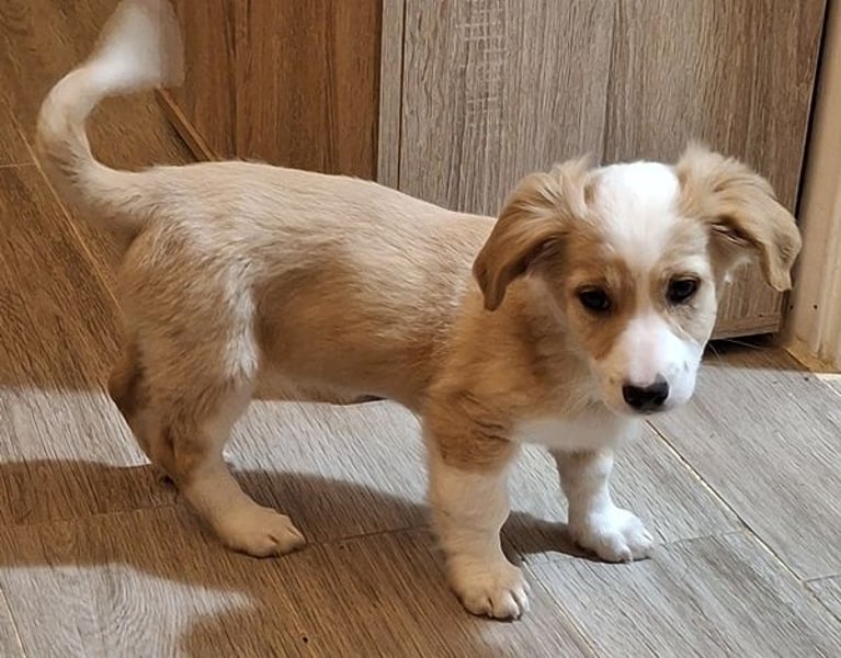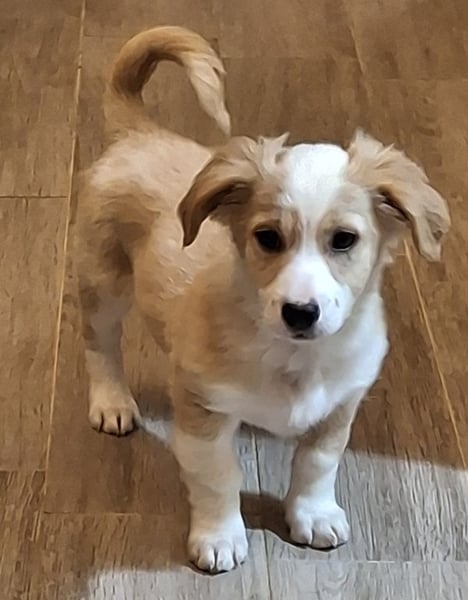 Wer sich einen lebensfrohen Begleiter wünscht, liegt bei Aren genau richtig. Aren hat ein helles Fell mit warmen, braunen Abzeichen an den Ohren und am Kopf.