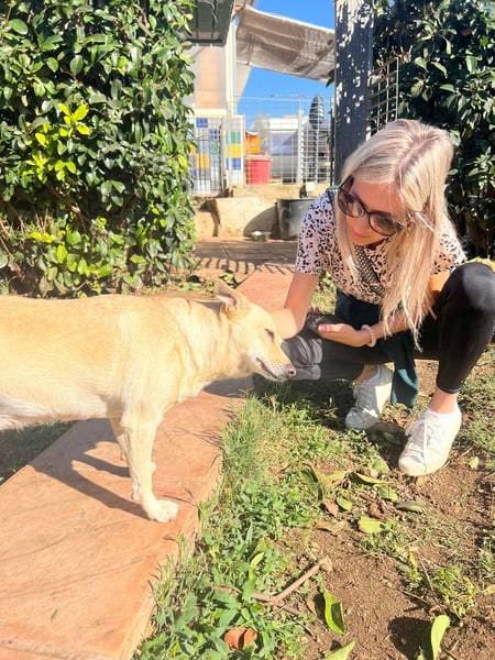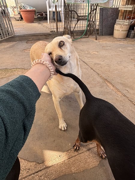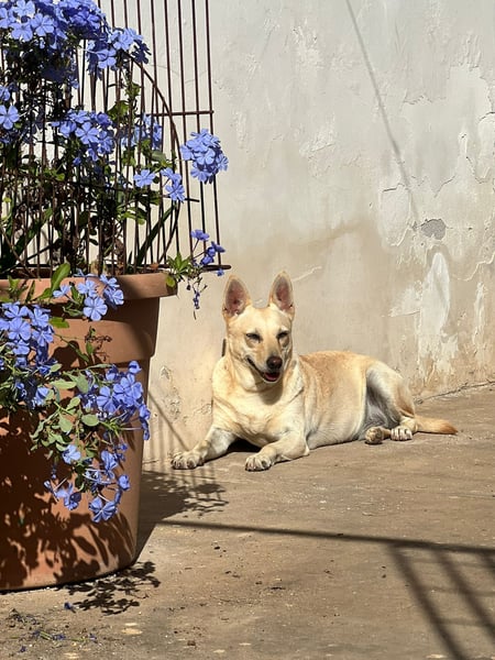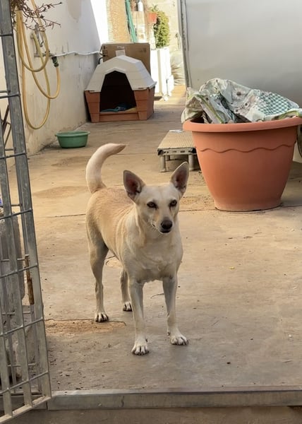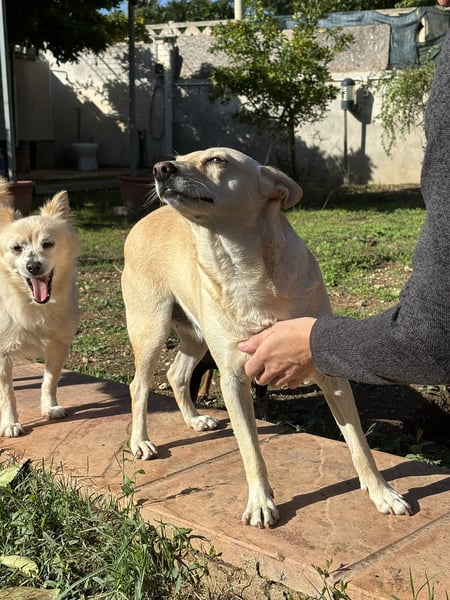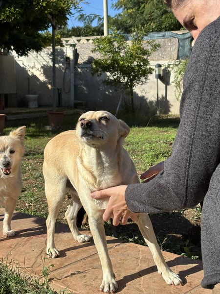 Frieda ist eine kleine, blonde Hündin mit einem ruhigen und sanften Wesen. Ursprünglich wurde sie allein auf der Straße gefunden und ins städtische Tierheim von Manduria gebracht. Von dort sollte sie in ein sogenanntes „Endlager“ verlegt werden – ein Tierheim ohne Vermittlungen, ohne Zukunft. Doch das Schicksal meinte es gut mit ihr: Gina, eine Tierschützerin, entdeckte Frieda, hörte ihren Namen und ihre Geschichte – und wusste sofort: Diese Hündin muss mit ihr nach Hause.