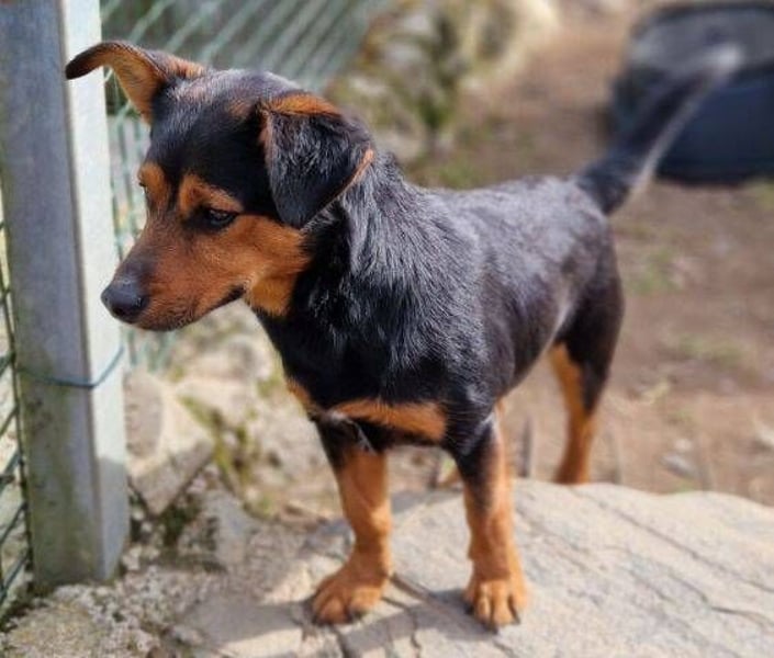 Das schlaue Kerlchen hat sich schnell an das Leben im Haus gewöhnt, ist bereits stubenrein und das Laufen an der Leine durfte er auch schon kennenlernen. In das dort lebende Hunderudel hat sich FLOCKY mit seiner sozialen Art problemlos integriert.