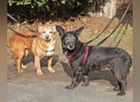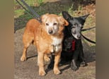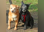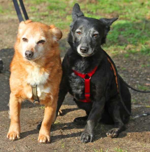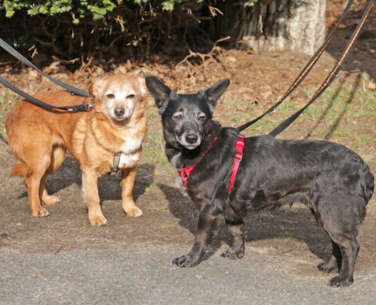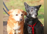 Pixi geht gut an der Leine und versteht sich gut mit anderen Hunden. Tonka geht noch nicht so gut an der Leine, das wird jetzt aber geübt.