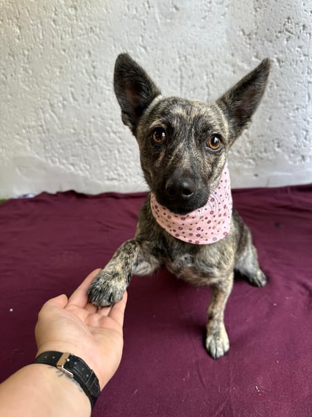 Hanja wurde am 1. September 2023 geboren und ist mit ihren 33 cm und etwa 9 Kilogramm eine zarte, kleine Mischlingshündin mit einem großen Herzen. Sie wurde schwanger aus einer Tötungsstation gerettet – verängstigt, erschöpft und ganz auf sich allein gestellt. Ihre Welpen haben es leider nicht geschafft. Doch Hanja hat überlebt – und sie trägt trotz allem ein liebevolles, warmes Wesen in sich.Sie ist eine sanfte, ruhige und unglaublich liebevolle Hündin, die Nähe und Zuwendung sehr genießt.