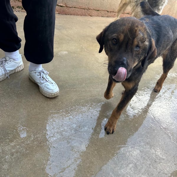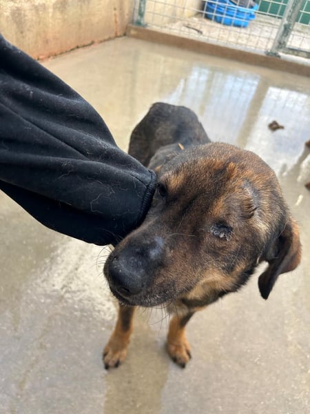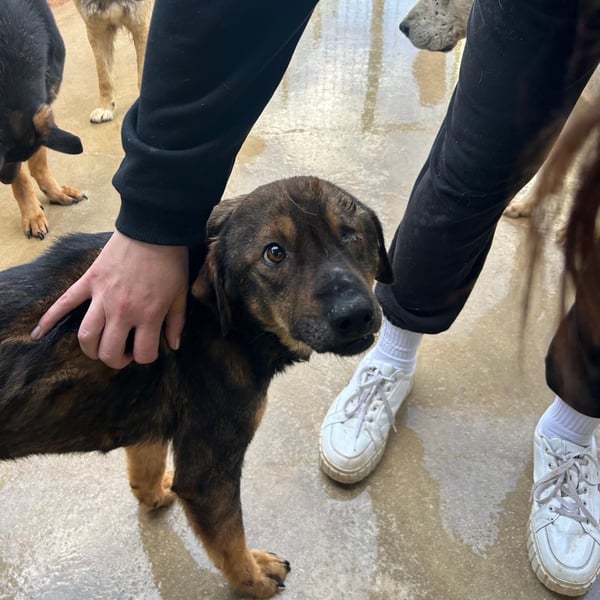 Momo leidet sichtbar im Shelter. Er ist kein Hund, der sich vordrängt oder laut wird. Er wartet still, zieht sich zurück und hält aus. Sein Handicap schränkt ihn im Alltag nicht ein – er kommt damit gut zurecht –, doch die laute, unruhige Umgebung im Zwinger ist für ihn besonders belastend.