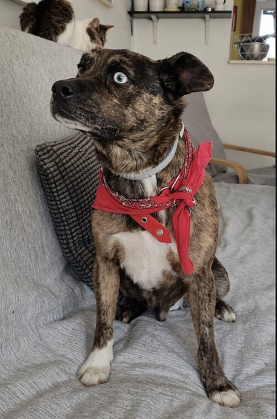 Mit anderen Hunden und auch Katzen zeigte er sich auf der Pflegestelle grundsätzlich verträglich. Dennoch steht für ihn der Mensch klar im Mittelpunkt.
