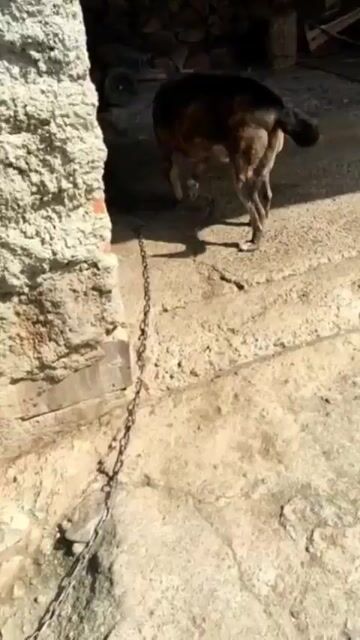 Seitdem wird er von einer Nachbarin einmal am Tag gefüttert und wartet erneut an der Kette auf seine Chance.