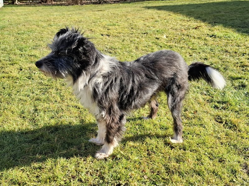 Baru kommt ursprünglich aus einem rumänischen Tierheim und kam in recht desolatem Zustand hier an. Auf der Pflegestelle wurde er liebevoll aufgepäppelt und hat das Meiste hinter sich gelassen. Ihm fehlt noch etwas an Muskulatur und durch einen kleinen, etwas älteren Bandscheibenvorfall hat er leichte Einschränkungen im rechten Vorderbein. Im Alltag merkt man ihm das überhaupt nicht an. Nur sportliche Aktivitäten oder Wanderungen sind nichts für ihn. 1-2 Stunden entspanntes Laufen sind aber kein Problem.
