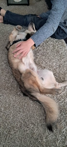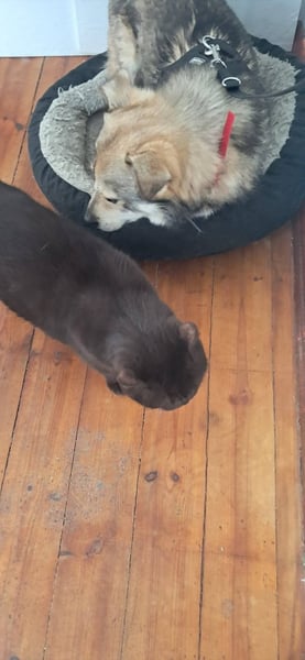 Obwohl ich das vermutlich nie gelernt habe, bin ich sofort stubenrein gewesen und füge mich gut im Haushalt mit Hund und Katze ein.