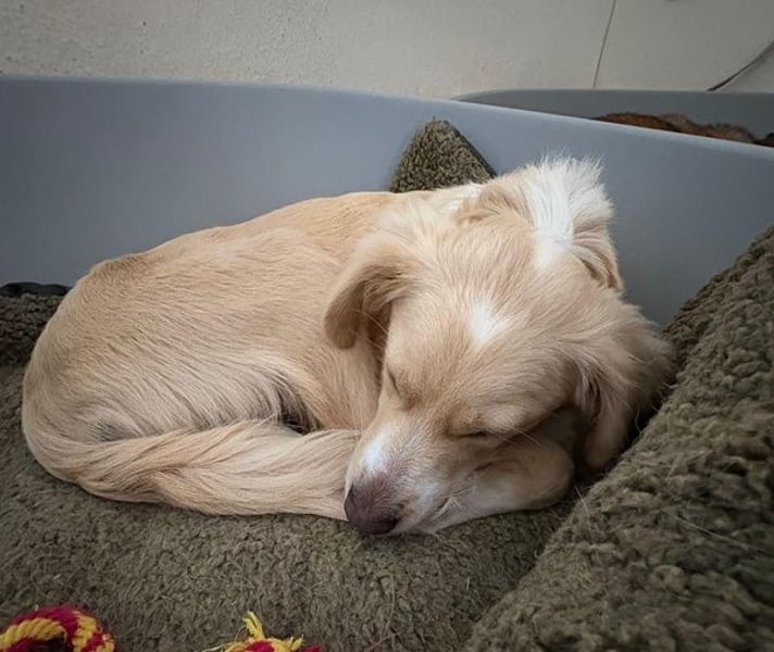 Hazel ist eine kleine Hündin mit hellem Fell, das weiße Abzeichen aufweist. Sie hat eine wuschelige Rute und hübsche dunkle Augen. Sie ist noch jung und wir wünschen uns sehr, dass sie schnell in ein schönes Zuhause umziehen darf, in dem sie geliebt und umsorgt wird. Das hat die freundliche Hundedame einfach so sehr verdient. Auf ihrer Pflegestelle zeigt sie sich aufgeschlossen und verspielt und auch verträglich mit den anderen Hunden.