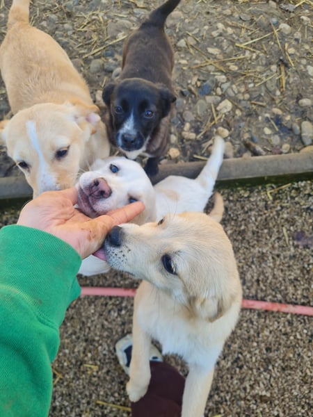 Im Tierheim müssen wir uns um so etwas keine Sorgen mehr machen. Hier können wir einfach Welpen sein, toben den lieben langen Tag herum, machen viele Freunde, kuscheln, wann immer es geht, sind sehr sozial und verspielt, neugierig und aktiv, superlustig – halt rundum wundervolle kleine Hunde, die man einfach lieben muss. (Sagen jedenfalls die Menschen hier und die würden uns ganz bestimmt nie anlügen. )