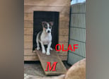 Olaf ist ein zuckersüßer Schatz, der anfangs noch sehr schüchtern ist. Er kommt bereits an die Hand und der letzte Schritt hin zum gekuschelt werden ist nicht mehr weit weg. Nach wie vor braucht er einfach Zeit und Geduld Vertrauen aufzubauen. Neue Menschen und neue Situationen überfordern ihn etwas, man merkt, dass er will, aber sich nicht richtig traut. Wir sind zuversichtlich, dass er in seiner eigenen Familie schnell den Knopf auftut und lernt zu vertrauen.