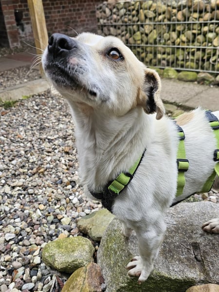 Im Auto ist Temmy ein entspannter Mitfahrer und das Thema Geschirr und Leine war auch nach kürzester Zeit kein Problem mehr.