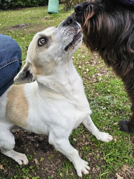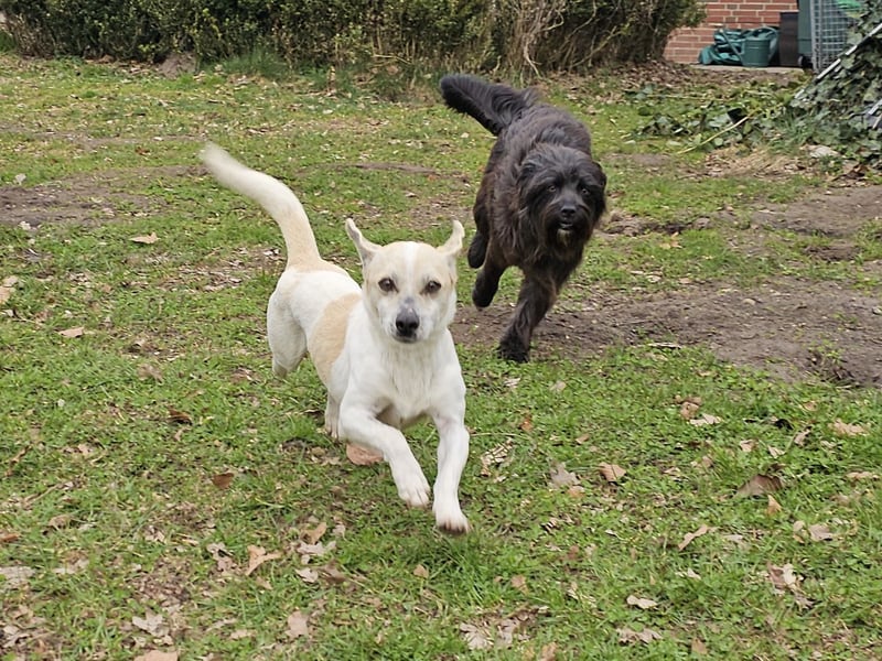 Mit anderen Hunden versteht der Süße sich gut. Er ist selbstbewusst, aber freundlich.