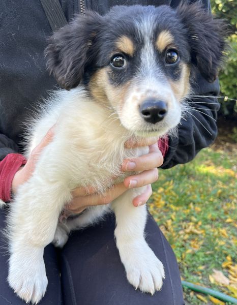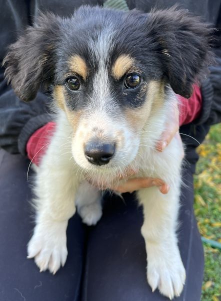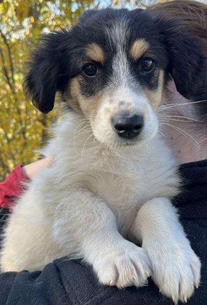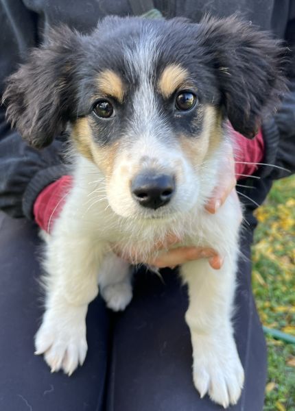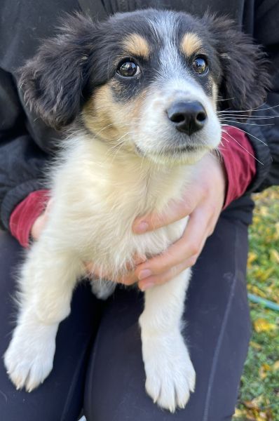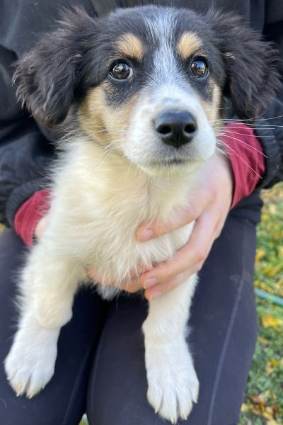 Fridolin ist ein äußerst schöner Welpenjunge. Mit seinem dreifarbigen Fellkleid und seinen süßen Knopfaugen besticht er sofort durch seine Optik. Fridolin wird einmal eine kleine bis mittlere Größe erreichen. Er wird als freundlich und aufgeschlossen beschrieben. Aufgrund seines Alters zeigt er sich welpentypisch verspielt. Auch mit den anderen Hunden auf der Pflegestelle zeigt er sich verträglich und lebt friedlich mit seinen Artgenossen zusammen.