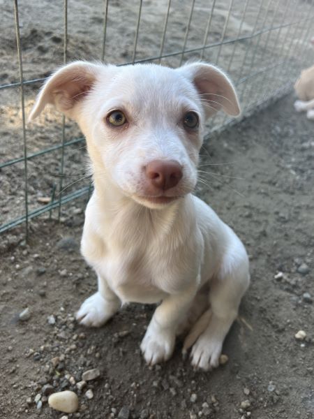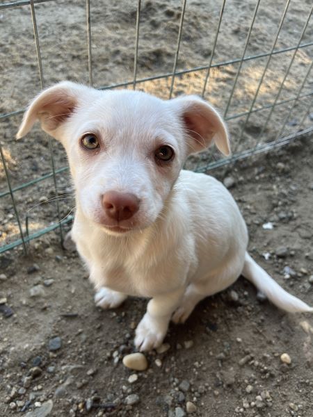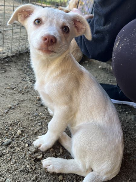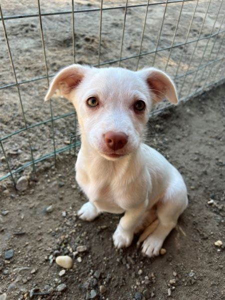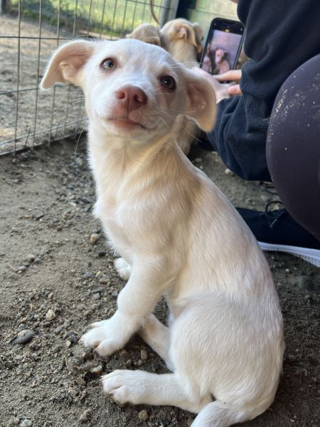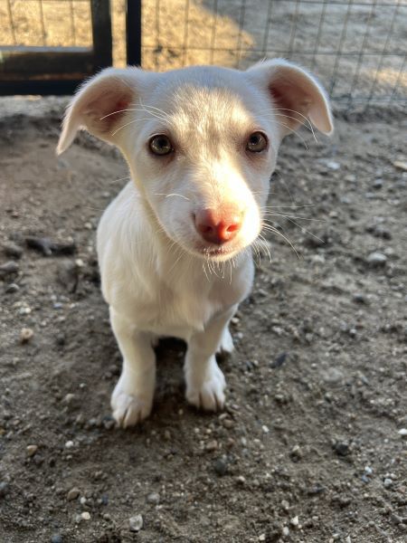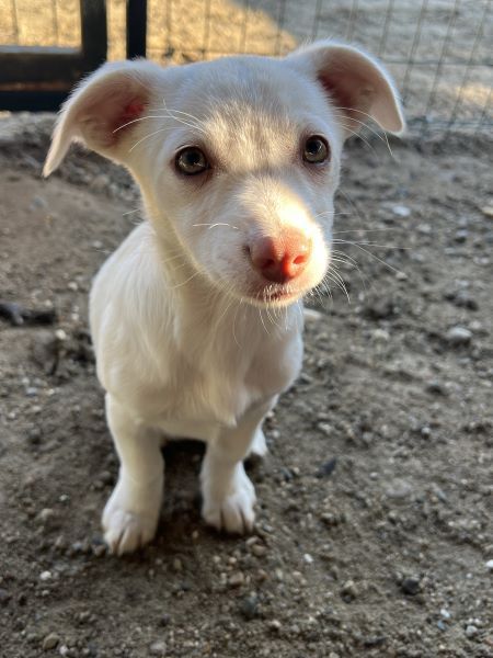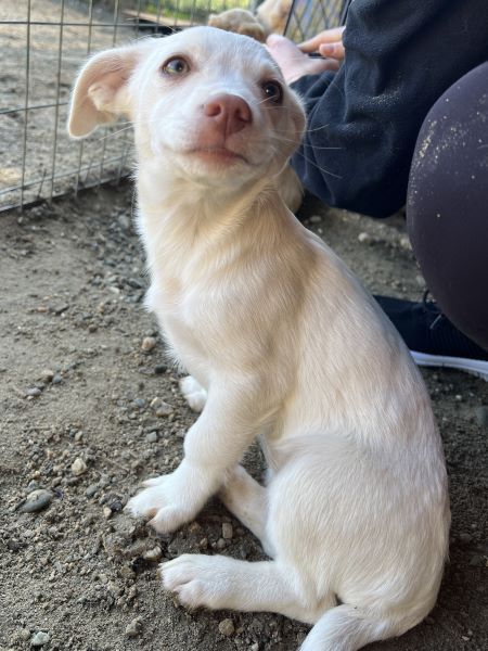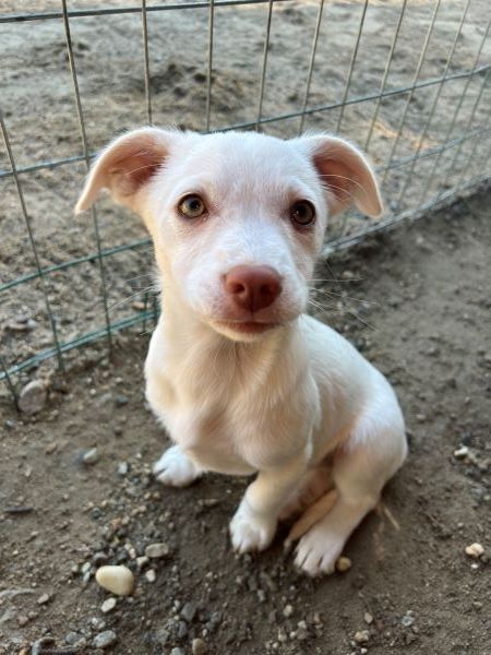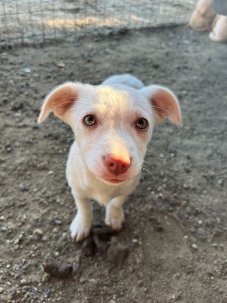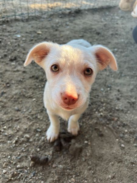 Dieses entzückende Hundemädchen ist unsere liebe Kiona. Sie könnte auch die Zwillingsschwester ihres Bruders Francky Stanley sein, denn die beiden sehen sich unglaublich ähnlich. Mit ihrem cremefarbenen Fellkleid, den ebenso hellen Augen und dem rosa Näschen sieht Kiona einfach toll aus. Darüber hinaus bezeichnen unsere ehrenamtlichen Helfer vor Ort sie als freundlich, verspielt und verträglich. Alles, was man sich von einem tierischen Familienmitglied wünscht – finden Sie nicht auch?