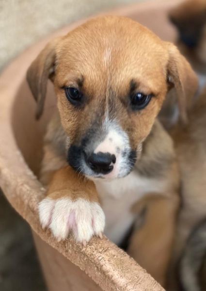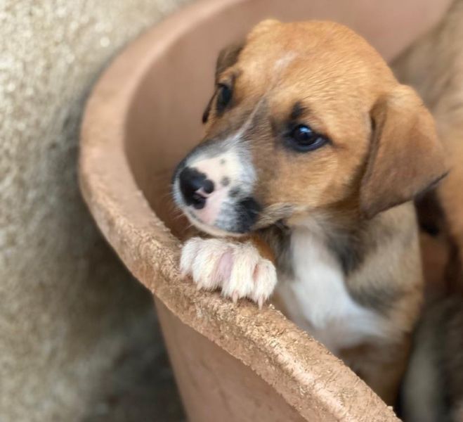 Kelana bleibt wie ihre Geschwister eher klein und ist somit für viele Wohnsituationen geeignet. Mit ihrem kurzen braunen Fell und den weißen Abzeichen sieht sie ganz entzückend aus, oder? Auch charakterlich weiß die kleine Maus zu überzeugen, denn im Tierheim begegnet sie den HelferInnen stets freundlich und aufgeschlossen. Darüber hinaus tobt sie gern mit ihren Geschwistern umher - eben typisch Welpe. Nun ist sie bald bereit für den nächsten Schritt in eine bessere Zukunft. Dafür braucht sie nur noch die richtigen Menschen, die verantwortungsbewusst und geduldig sind und bereit, ihr Herz für einen Welpen aus dem Tierschutz zu öffnen. Kelana möchte noch eine Menge lernen, daher sollte ihr der Besuch einer passenden Welpen- oder Junghundgruppe in einer Hundeschule ermöglicht werden. Dort hätte sie die Möglichkeit zu kontrollierten Sozialkontakten und Sie können als Team zusammenwachsen. Möchten Sie dem süßen Hundemädchen eine Chance geben? Dann freuen wir uns sehr auf Ihre Nachricht!