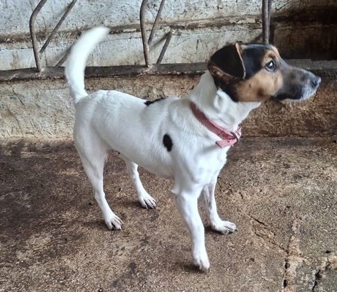 Möök hat einen ausdrucksstarken, warmen Blick und eine freundliche Ausstrahlung. Ihr kurzes, gepflegtes Fell ist weiß mit braunen Abzeichen. Die leicht hängenden Ohren und die aufmerksamen Augen unterstreichen ihren liebenswerten Charakter – ein Hund, der sofort das Herz berührt. Sie ist ein absoluter Sonnenschein: aufgeschlossen, freundlich und menschenbezogen. Möök versteht sich mit Artgenossen und hat auch schon Kinder kennengelernt, was sie zu einem tollen vierbeinigen Begleiter macht. Sie zeigt sich ausgeglichen, neugierig und genießt gemeinsame Zeit ebenso wie ruhige Momente. Der Besuch einer gut ausgewählten Hundeschule würde ihr zusätzlich helfen, ihre positiven Anlagen zu festigen und die Bindung zu ihren neuen Menschen zu stärken.