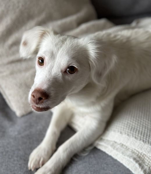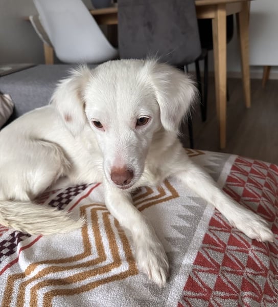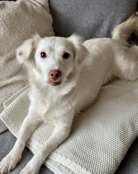Eigenschaften: freundlich, kennt Katzen, verträglich mit Artgenossen, offen, sozial, unkompliziert, genießt Streicheleinheiten, lieb, stubenrein, läuft gut an der Leine