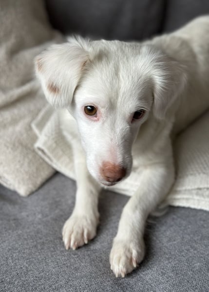 Hundebegegnungen und viel Trubel auf den täglichen Gassirunden findet sie noch etwas gruselig, besonders große Hunde. Aber auch hier wird sie jeden Tag mutiger.