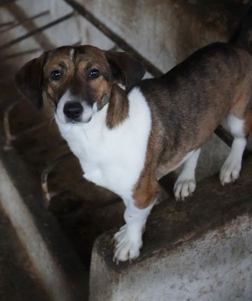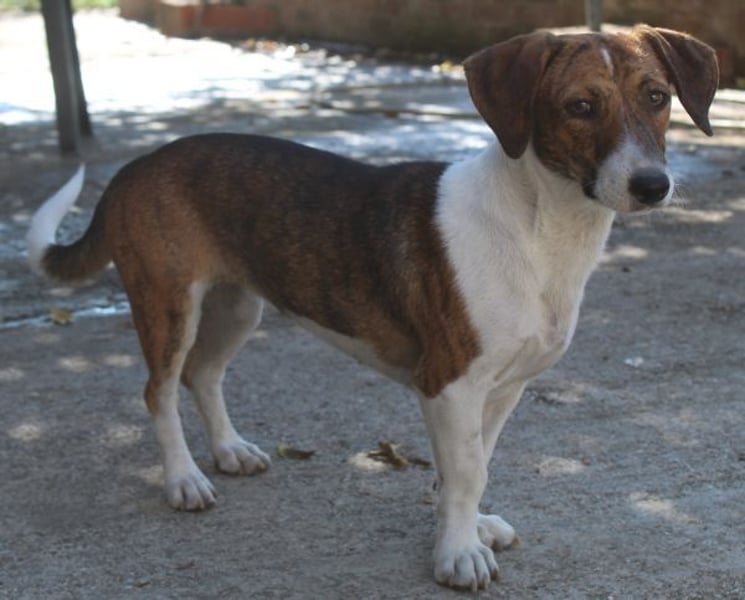 Tanu ist eine hübsche, kleine Hündin mit einem wunderschönen, kurzhaarigen Fell in warmen Braun- und Weißtönen. Sie zeigt sich verträglich mit anderen Hunden und freundlich gegenüber Menschen. Dennoch ist sie sehr zurückhaltend und wird sicher viel Zeit benötigen, um Vertrauen aufzubauen.
