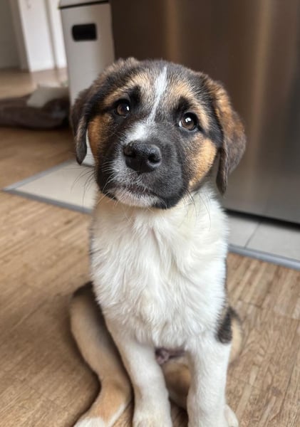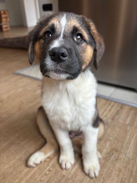 Boreas ist ein süßer dreifarbiger Rüde mit einer besonderen Fellzeichnung, die seinem Gesicht viel Ausdruck verleiht. Nun gilt es, ein geeignetes Zuhause für den kleinen Kerl zu finden, denn auch eine liebevolle Pflegestelle ist nur eine Übergangslösung für unsere Hunde. Viel lieber möchte der kleine Kerl in seinem Zuhause auf Lebenszeit aufwachsen. Boreas zeigt sich auf seiner Pflegestelle als ein sehr neugieriger, mutiger und aufgeweckter kleiner Kerl. Er zeigt sich mit den vorhandenen Hündinnen auf der Pflegestelle sehr verträglich, sowie mit den Katzen, die dort leben. Das Autofahren und Spazieren gehen meistert er bisher auch sehr gut. Nur an den Stubenreinheit muss welpentypisch noch gearbeitet werden. Für Boreas wünschen wir uns einen abwechslungsreichen Alltag, viel Ruhe und genügend Zeit für Spiel, Spaß und Schmusen. Selbstverständlich möchte selbst der süßeste Junghund auch etwas lernen und somit könnte der Besuch einer erfahrenen Hundeschule eine gute Idee sein. Hat Boreas Ihr Interesse geweckt, freuen wir uns sehr auf Ihre Anfrage.