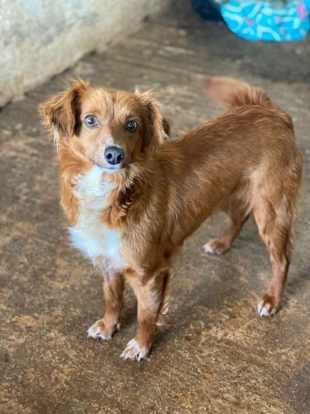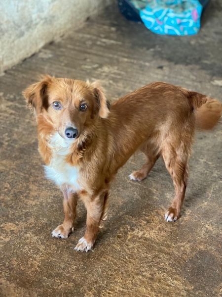 Konrada ist eine junge Hündin mit wunderschönem fuchsbraunem Fell und einer weißen Brust. Ihr niedlicher Hundeblick geht direkt ins Herz und macht es schwer, ihr zu widerstehen. Mit einer Größe von etwa 35–40 cm hat sie eine angenehme, handliche Größe und eignet sich wunderbar als Begleiterin für viele Lebenssituationen. Vom Wesen her zeigt sich Konrada freundlich, aufgeschlossen und sehr menschenbezogen. Sie freut sich über Aufmerksamkeit und begegnet Menschen offen und neugierig. Auch mit anderen Hunden versteht sie sich bestens und lebt harmonisch in der Hundegruppe auf ihrer Pflegestelle. Da Konrada noch jung ist, möchte sie natürlich noch vieles lernen. Für sie wünschen wir uns Menschen, die Freude daran haben, gemeinsam mit ihr die Welt zu entdecken und ihr mit Geduld und liebevoller Konsequenz das Leben als Familienhund näherzubringen. Mit ihrer freundlichen und offenen Art wird sie sich sicher schnell in ihrem neuen Zuhause einleben. Wenn Sie Konrada ein liebevolles Zuhause schenken möchten, freuen wir uns sehr auf Ihre Anfrage!