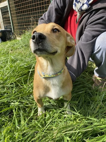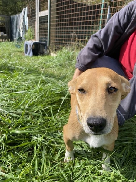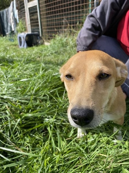 Unsere bezaubernde Ada, mehr lang als hoch, ist ein Synonym für Glückseligkeit. Die fast dreijährige Hündin (Stand Oktober 2025) schmust und kuschelt und springt und spielt, als gäb’s kein Morgen. Und auch kein Gestern. Was doch einigermaßen erstaunlich ist, denn die kleine Hellbraune hatte bis vor kurzem so rein gar nichts zu lachen.