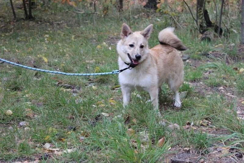 Hütehund-Mix, weiblich, geb. ca. 07.03.2025, blond-beige , ist ein junger Rohdiamant