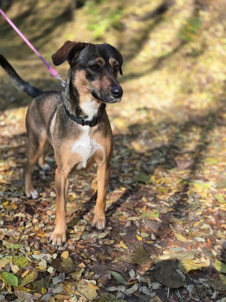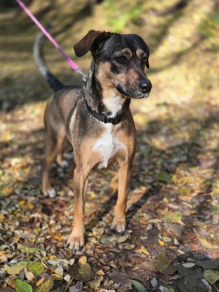 Pircsi ist eine etwa 2 Jahre alte, 42 cm große Mischlingshündin – eine wirklich tolle Begleiterin, die mit ihren treuen Augen und ihrer ruhigen Art schnell die Herzen gewinnt.