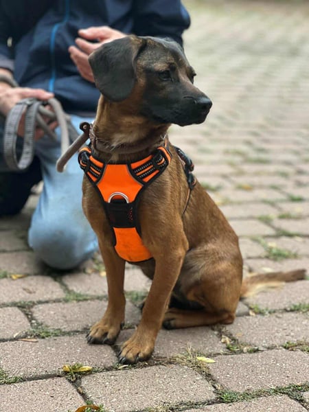 Aber er hat gelernt. Die Leine kennt er schon ein bisschen, im Haus bewegt er sich frei und er lässt sich streicheln und anfassen. Neue Situationen und Umgebungen machen ihm aber nach wie vor Angst.