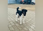 Hier ist Domino! Er ist ein 1,5 Jahre alter, 11 kg schwerer und 38 cm großer Mischlingshund.