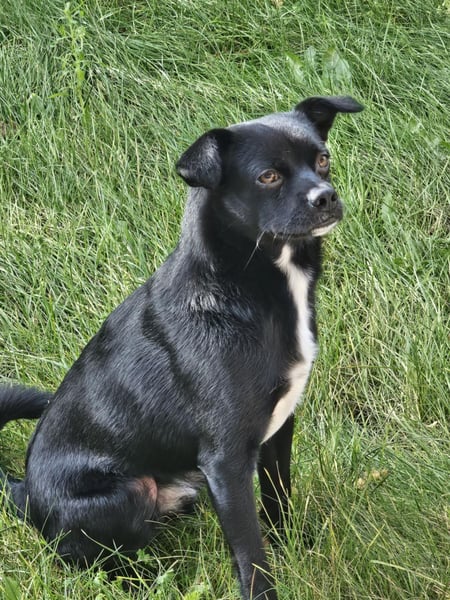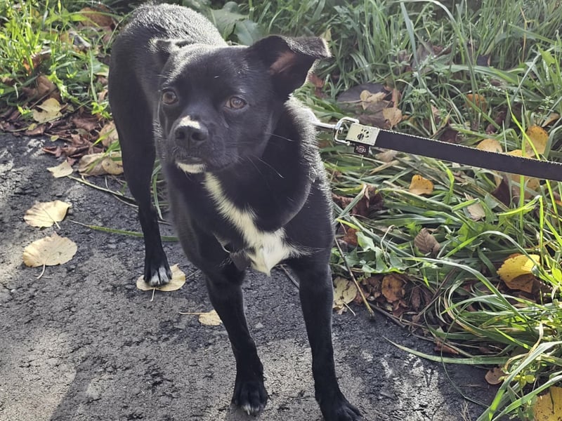 Ein souveräner Hundekumpel im neuen Zuhause wäre ideal für ihn, denn Onyx orientiert sich stark an anderen Hunden und möchte mit ihnen spielen. Verkehr findet er noch etwas gruselig – besonders große Traktoren oder laute Fahrzeuge. Wenn jedoch ein anderer Hund gelassen bleibt, beruhigt ihn das sehr.