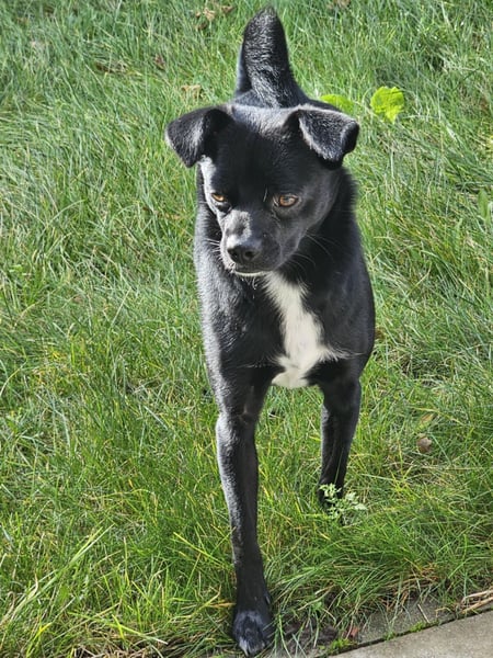 Onyx ist ein fröhlicher, lernfreudiger junger Hund, der gerne überall dabei ist.