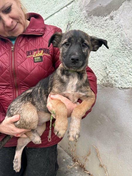 Manó ist ein kleiner, verspielter Junghund, geboren am 11. September 2024, derzeit etwa 33 cm groß, ein herzensguter Mischlingshund.