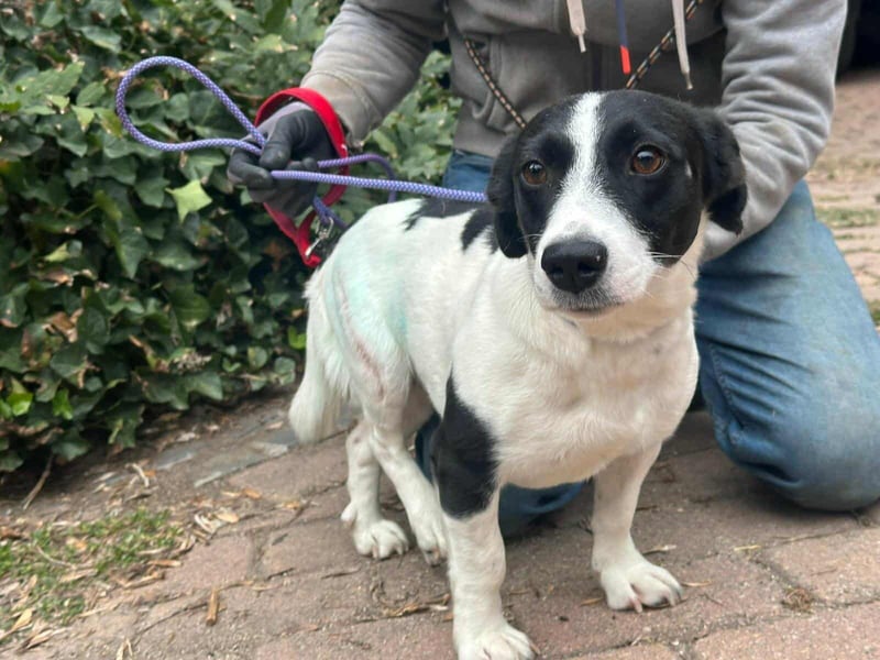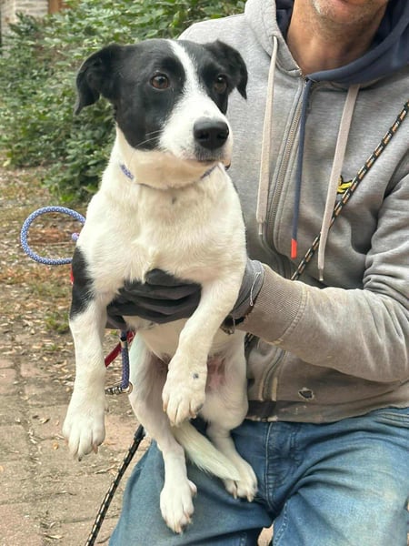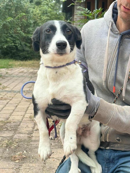 Geboren ist Alma im August 2023, sie ist etwa 29 cm groß und wiegt 8,7kg – eine kleine, zarte Mischlingshündin mit einem ganz großen Herz.