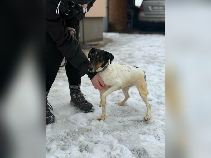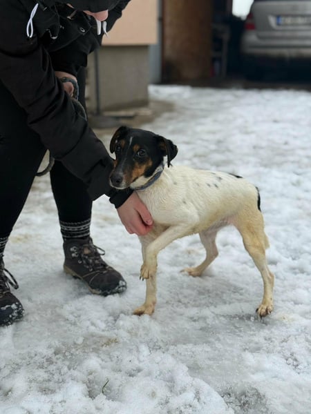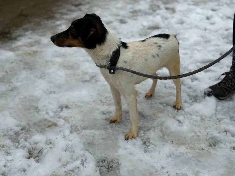 Mona ist eine 39 cm große Foxterrier-Mischlingshündin, geboren am 18.10.2022. Sie kam als winziger, etwa zwei Monate alter Welpe mitten im Winter zu uns. Wir fanden sie allein auf der Straße. Obwohl ihr Besitzer ermittelt werden konnte, unternahm dieser nichts, um sie am Weglaufen zu hindern. Schließlich blieb Mona bei uns – und darüber sind wir sehr froh.