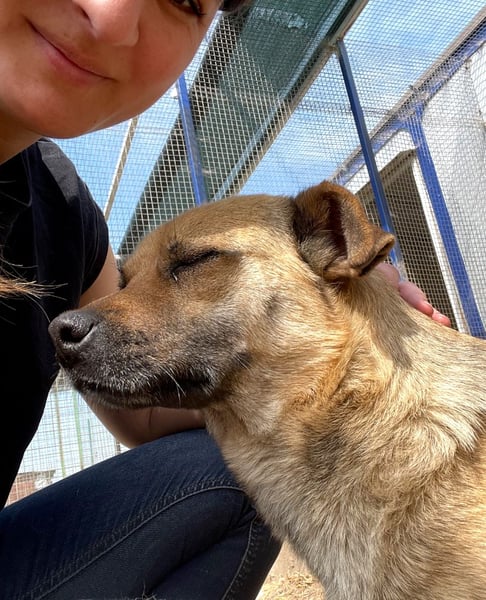 Mia muss noch lernen, dass ihr niemand mehr wehtun wird. Doch sie hat riesige Schritte nach vorne gemacht. Dank toller Volontäre, die vor Ort viel Zeit mit ihr verbracht haben, kann Mia bereits angstfrei ein Geschirr tragen. Ihr Wunsch nach endlosen Kuscheleinheiten ist ungebrochen - sie ist eine echte kleine Herzensbrecherin, die Lust hat zu lernen und die sich toll in einem echten Zuhause entwickeln wird.