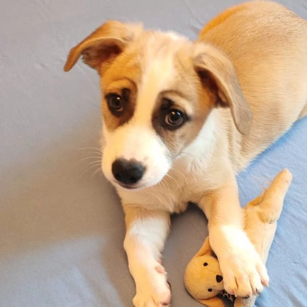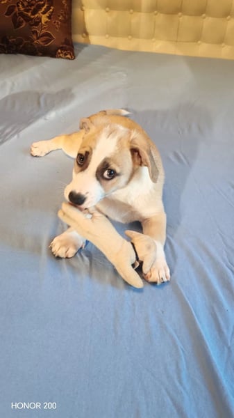 Emoji wurde gemeinsam mit seinen fünf Geschwistern Ecmo, Elea, Esko, Edith und Elliot im Juni 2025 im Tierheim „Therapy Dogs and Cats“ aufgenommen.