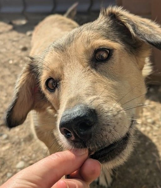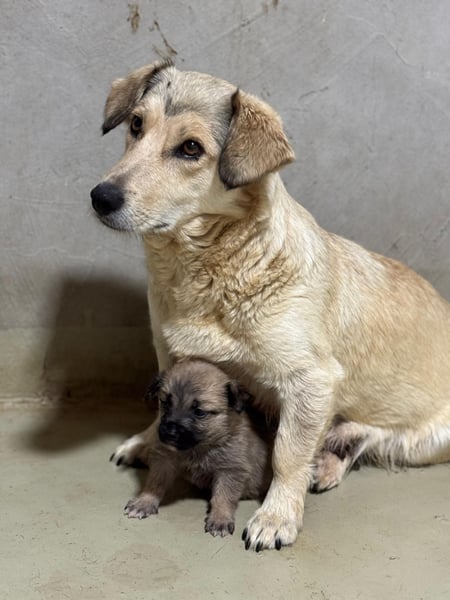Umi wurde im Juli 2025 mithilfe einer Lebendfalle von der Straße gerettet. Sie hatte ihre Welpen dort zur Welt gebracht – diese konnten rasch gesichert werden. Bei Umi selbst war etwas Geduld gefragt: Erst einen Tag später gelang es, auch sie zu sichern und in unser Partnertierheim Free Amely aufzunehmen.