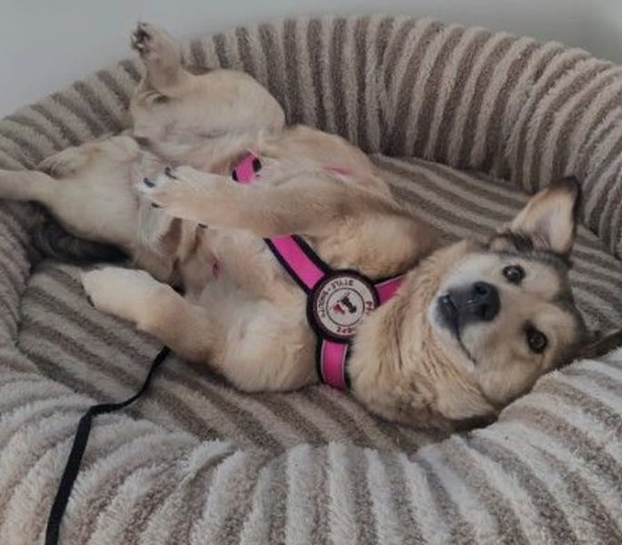Den Garten erkundet Umi neugierig und bewegt sich dort sicher. Das Tragen eines Geschirrs sowie das Laufen an der Leine kennt Umi bisher noch nicht. Die Pflegestelle arbeitet täglich weiter am Vertrauensaufbau, sodass gemeinsame Spaziergänge hoffentlich bald möglich sein werden.