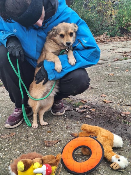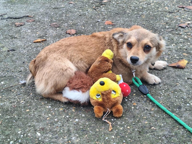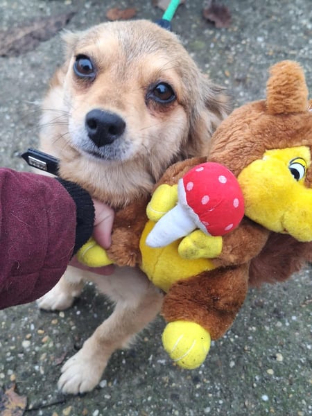 Hope kam gemeinsam mit ihrem Bruder Lucky in unser Partnertierheim. Sie ist eine vorsichtige, noch unsichere junge Hündin, die langsam Vertrauen fasst. Ihr Schwänzchen ist sehr kurz – ob angeboren oder amputiert, wissen wir nicht –, doch gerade das macht sie besonders.