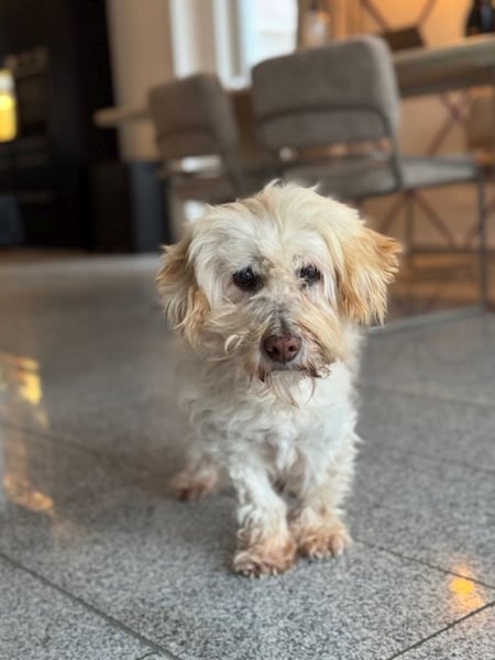 Jhonny hat sich wunderbar auf seiner Pflegestelle eingelebt und zeigt sich dort als absolut unkomplizierter Mitbewohner. Er lebt problemlos mit anderen Hunden und auch mit Katzen zusammen und ist selbstverständlich stubenrein. Der liebenswerte, sanfte Opi genießt sein ruhiges Rentnerleben in vollen Zügen. Lange, aufregende Spaziergänge braucht er nicht mehr – viel wichtiger sind ihm gemütliche Stunden auf seinen weichen Kissen, ausgiebige Kuscheleinheiten und ein warmes Plätzchen. Besonders gerne liegt Jhonny in der Nähe des Kamins, wo er entspannt dösen kann. Wenn er Hunger hat oder nach draußen muss, macht er freundlich auf sich aufmerksam und meldet sich mit einem Bellen. Insgesamt ist Jhonny ein total unkomplizierter, zuckersüßer Senior, der mit seiner ruhigen Art und seinem großen Herzen jeden sofort berührt.