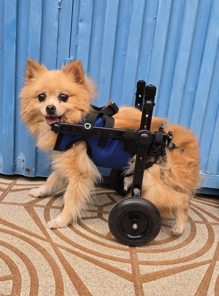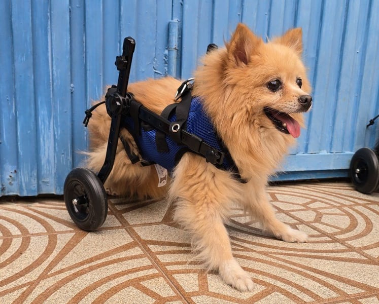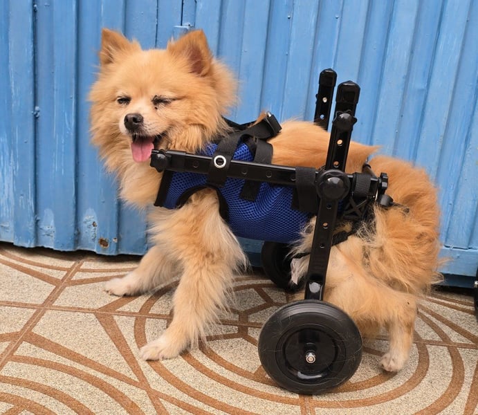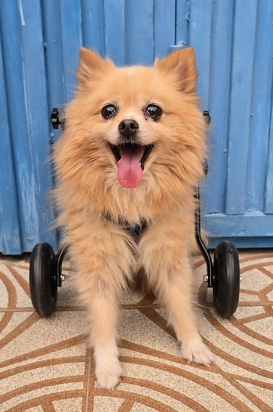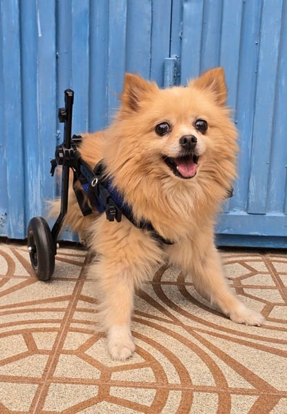 In beiden Hinterbeinen sind die Kniescheiben verschoben, was große Schmerzen verursacht, wenn sie ohne Hilfe stehen oder laufen soll. Eine Operation ist zwar möglich, aber es ist eine langwierige, schmerzhafte Prozedur, und eine Garantie auf Besserung gibt es nicht. Ein Rollstuhl ist nicht nur billiger, sondern erspart Hope auch einen langen Aufenthalt in der Tierklinik.