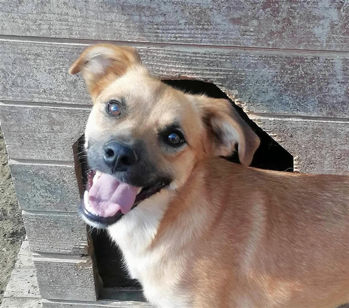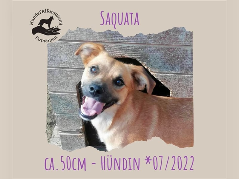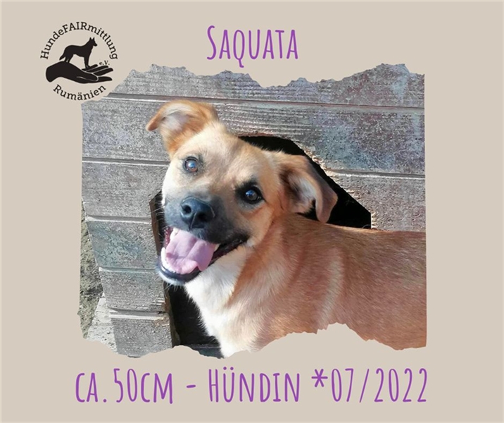 Diese süße Hündin mit der dunklen Maske ist Saquta. Sie wurde mit ihren Geschwistern aufgefunden. Sie ist eine liebe, fröhliche, aktive und freundliche junge Dame. Mit kleinen Hundeabenteuern und kuscheligen Sofaabenden könnte man sie sicherlich sehr glücklich machen.