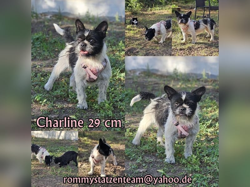 Charline, Hündin, Mischling, geboren ca. 31. Juli 2024 (von einem ungarischen Tierarzt geschätzt), reist kastriert, Schulterhöhe: ca. 29 cm und ca. z.Z. 5,5-6,5 Kilo (Hals: 29-34 cm, Brust: 46-50 cm), Vermittlung zu Katzen: ja, wenn diese das Leben mit Hunden kennen. Auf Wunsch wird auch extra nochmals getestet, nur eine Garantie gibt es nicht.