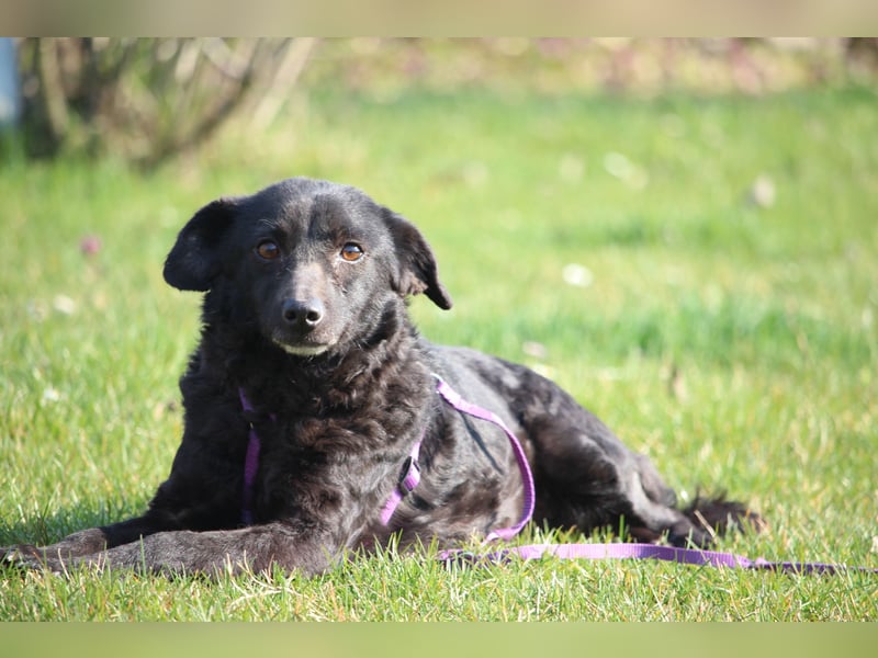 Hallo ihr da draußen, das ist Nika, eine tolle und liebevolle Hundedame, die ihre Menschen sucht. Mit ihrem wunderschönen, schwarz glänzenden Fell und ihren ausdrucksstarken, bernsteinfarbenen Augen erobert sie die Herzen im Sturm. Nika wurde im November 2021 geboren und hat mit einer Schulterhöhe von etwa 35 cm bereits ihre endgültige Größe erreicht. Sie ist damit eine handliche Begleiterin für viele Lebenslagen. m Nika ist eine freundliche Hündin, die die Nähe zu ihren Menschen sehr genießt. Sie freut sich über gemeinsame Zeit, Zuwendung und schöne Momente mit ihrer Familie. Mit ihrer liebevollen Art möchte sie Teil eines Zuhauses sein, in dem sie ankommen und dazugehören darf. Da Nika noch weiter lernen und sich entwickeln möchte, sucht sie Menschen, die Lust haben, gemeinsam mit ihr das Hunde-1×1 zu festigen und ihr mit Geduld und Liebe zu zeigen, was es heißt, eine treue Begleiterin zu sein. Kinder im neuen Zuhause sollten älter sein und bereits einen respektvollen Umgang mit Hunden kennen, damit sich alle Beteiligten wohlfühlen können.