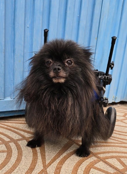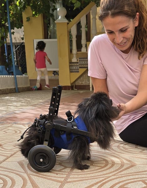 Deshalb hat die kleine Maus einen fetzigen Rollstuhl bekommen, mit dem sie nun schmerzfrei durch die Gegend flitzen kann.